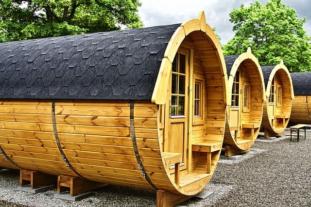 객실 내부에는 4인용 식탁, 전자레인지, 냉장고, 기본적인 취사 도구(냄비, 그릇, 수저 등)가 갖춰져 있어 편리했습니다.